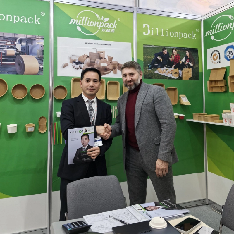 As part of our European market expansion, we showcased premium eco-friendly cutlery sets, high-strength paper takeaway boxes, and custom-printed hot drink cups. This event strengthened relationships with European importers and introduced our brand to high-end hospitality businesses.
